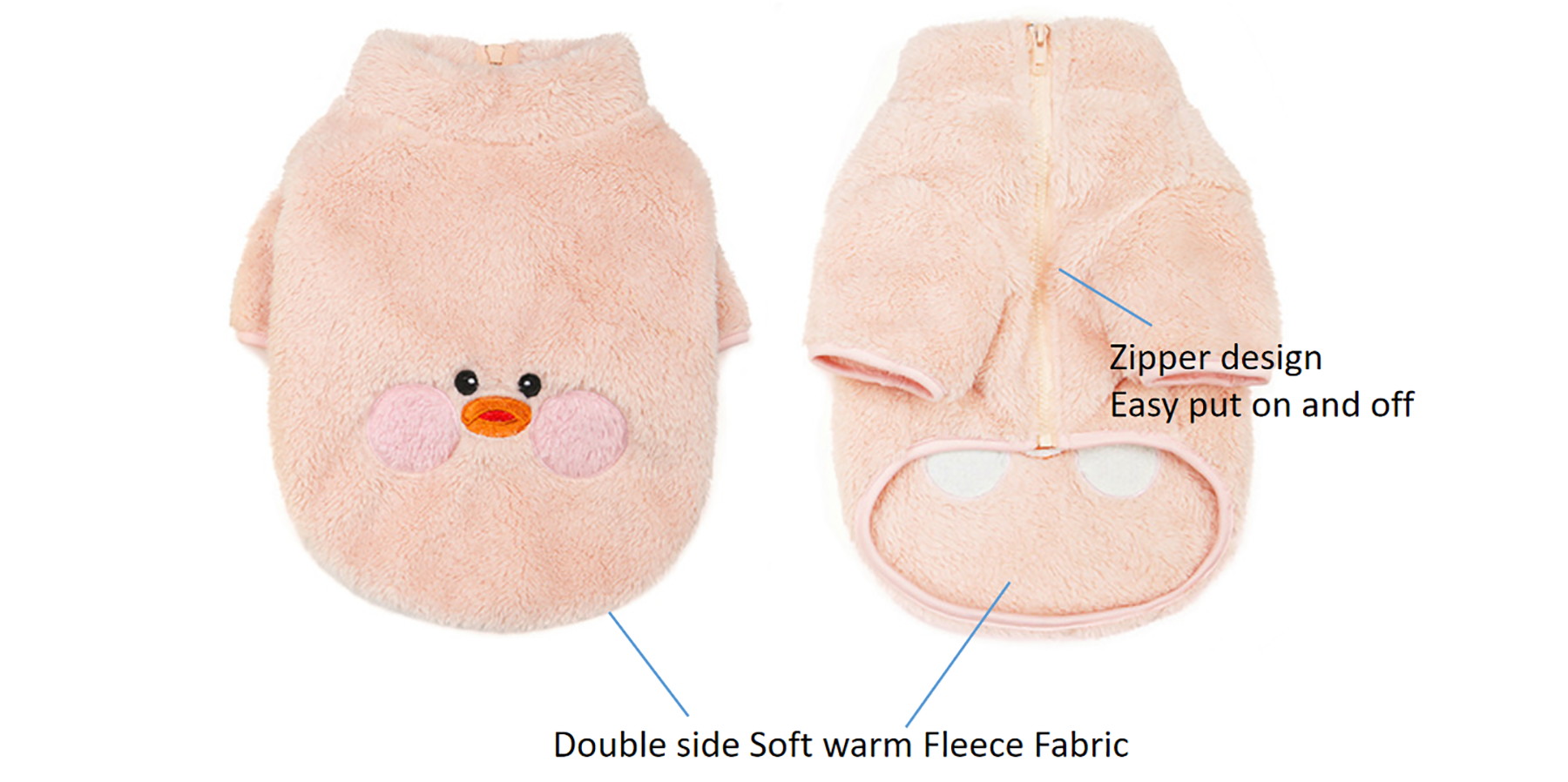 This product incorporates double-sided fleece fabric to maximize insulation while maintaining breathability, a pivotal factor for maintaining pet comfort. The materials selected ensure skin-friendliness, reducing irritation risks while delivering softness and plush warmth appropriate for cold conditions. The fleece quality caters to manufacturing demands for reliable, repeatable performance, while sizing options from S through 2XL accommodate various animal morphologies. The easy-to-operate zipper design supports swift donning and removal processes, optimizing packaging and retail workflows within the Pet Clothes Factory environment.
