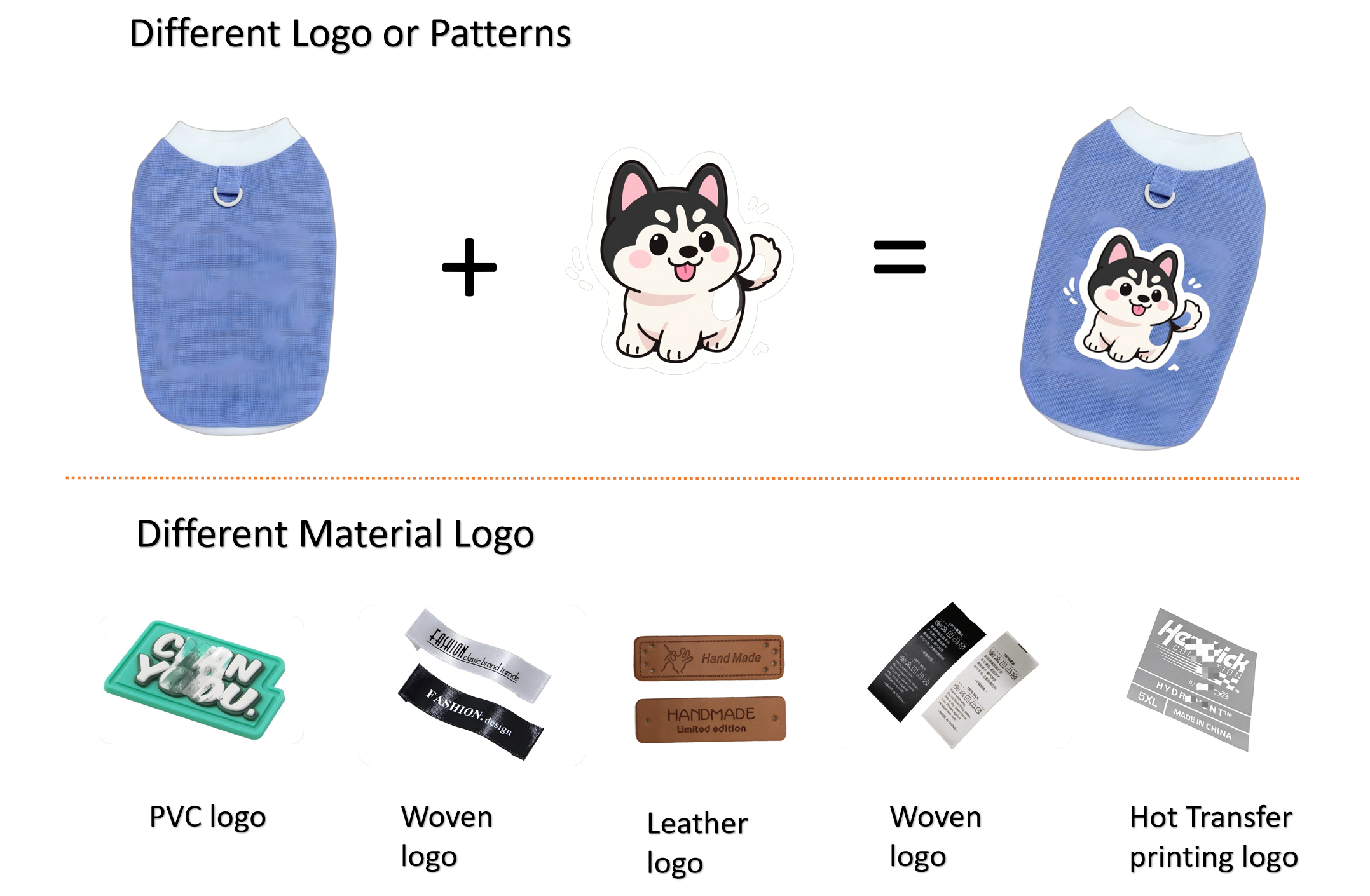 (PVC/Rubber Logo, Woven Logo, Leather/PU Logo, Laser Engrave Logo, Paper Tag, Embroidery Logo, Metal Tag, Hot Transfer printing Logo, Expoxy Sticker logo or support any customzied as need)