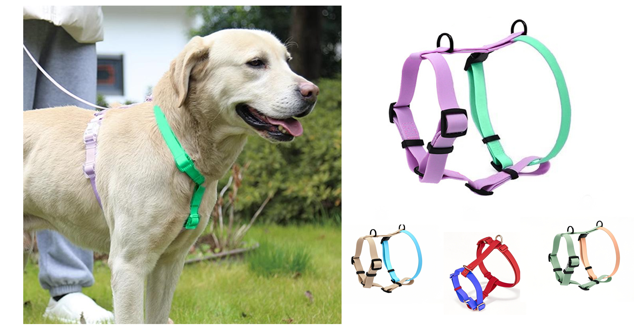 Adjustable Dog Harness with supporting any color and any pattern customized. Very fashional and unique multiple color combined design.
