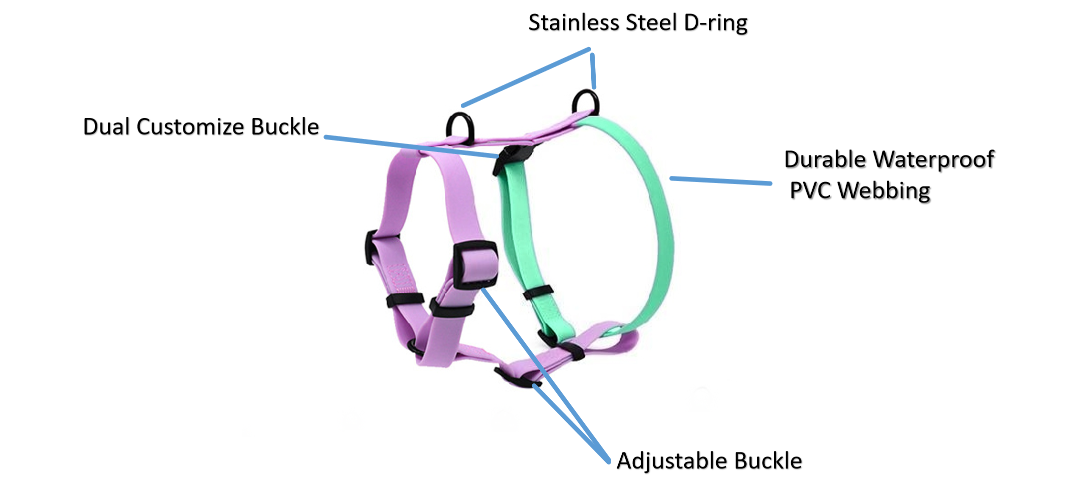 Premium waterproof outdoor pet harness. Luxury Customized Wonderful Colors for Outdoor Sport Running for Pets. Dual buckle design for more easier wearing and more quick release.